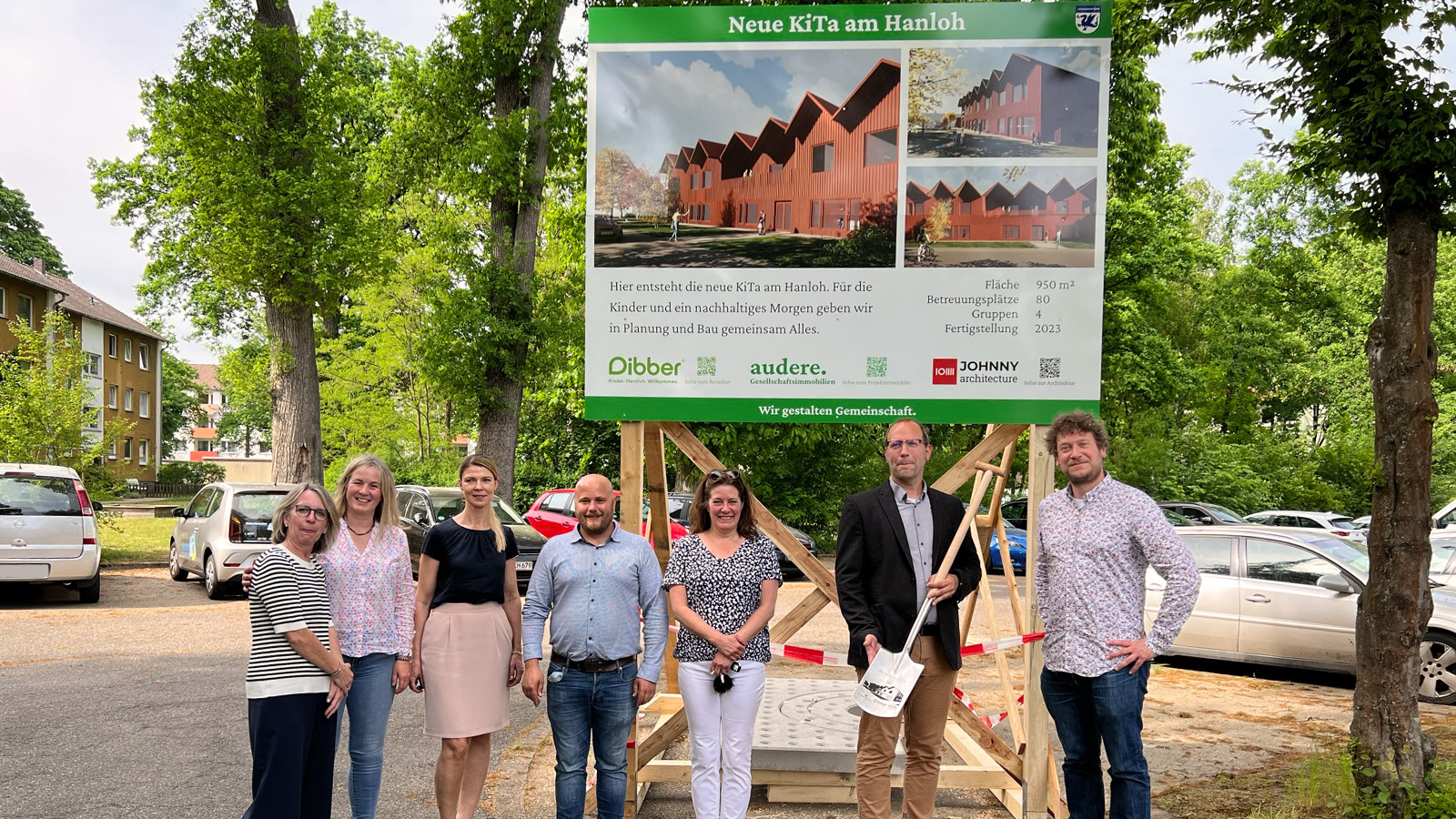 Die Stadt Munster wurde durch Anna Adamczak, allgemeine Vertreterin des Bürgermeisters von Munster, repräsentiert. Für den gemeinnützigen Träger Dibber gGmbH Kindertagesstätten war Conny Bains-Terschawetz, Leiterin der Standortentwicklung Deutschland, zugegen. Die audere Gesellschaftsimmobilien war mit Christian Quendt, Director Project Management & Innovation vor Ort und die ausführenden Architekten JOHNNY architecture wurden durch ihren Geschäftsführer Jon Steinfeld vertreten.
