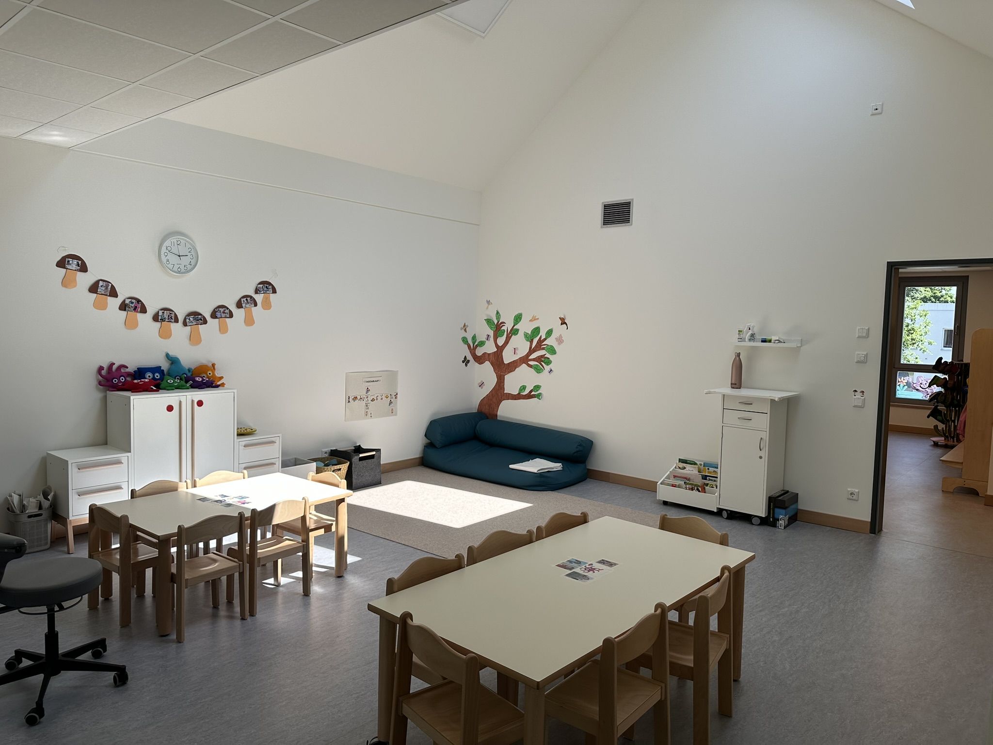Die KiTa bietet auf 4.245 Quadratmetern Grundstücksfläche Platz für 80 Kinder im Alter von bis zu sechs Jahren – ist unterteilt in zwei Kinderkrippen- (U3) sowie zwei Kindergarten-Gruppen (Ü3) und erstreckt sich über zwei Stockwerke (ca. 979 Quadratmeter Nutzfläche). Großzügig geplante Gruppenräume sowie die durchdachte Anordnung & Ausstattung aller anderen Räume bilden die Grundlage für eine Kindertageseinrichtung der neuesten Generation.