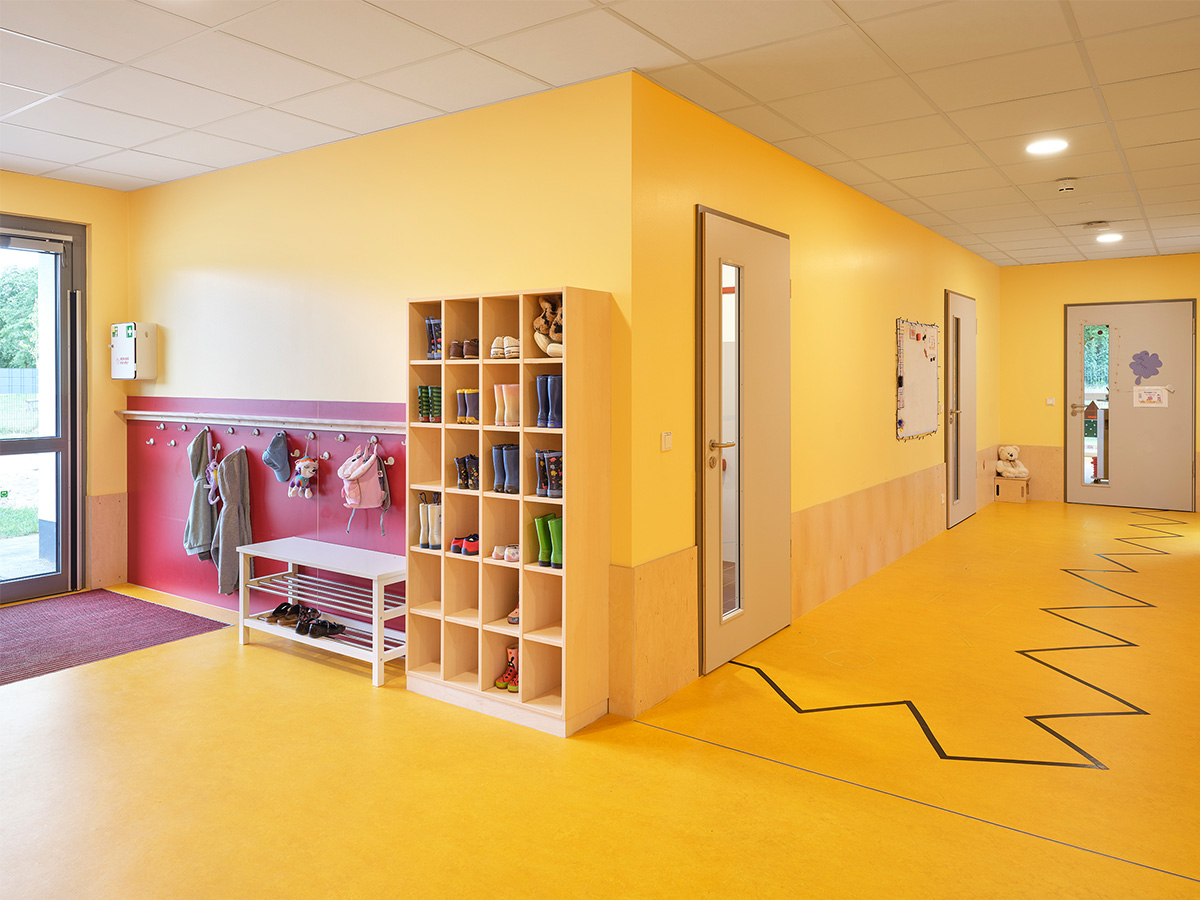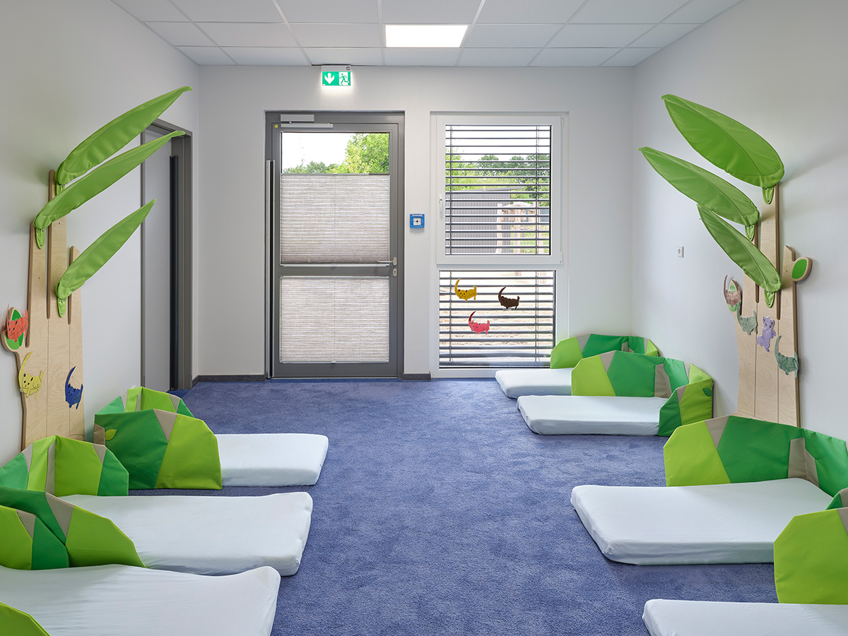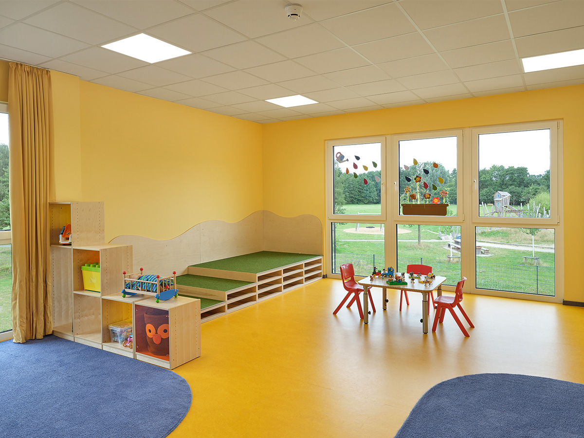 Die Stand-alone KiTa ist mit acht Gruppenräumen, Sanitäreinrichtungen sowie allen notwendigen Neben- und Personalräumen ausgestattet. Die zentral gelegene KiTa wurde als Modulbau errichtet. Durch den Einsatz hochwertiger Dämmstoffe und die Installation einer PV-Anlage auf dem Gebäudedach leisten wir einen wesentlichen Beitrag zur Ressourcenschonung.